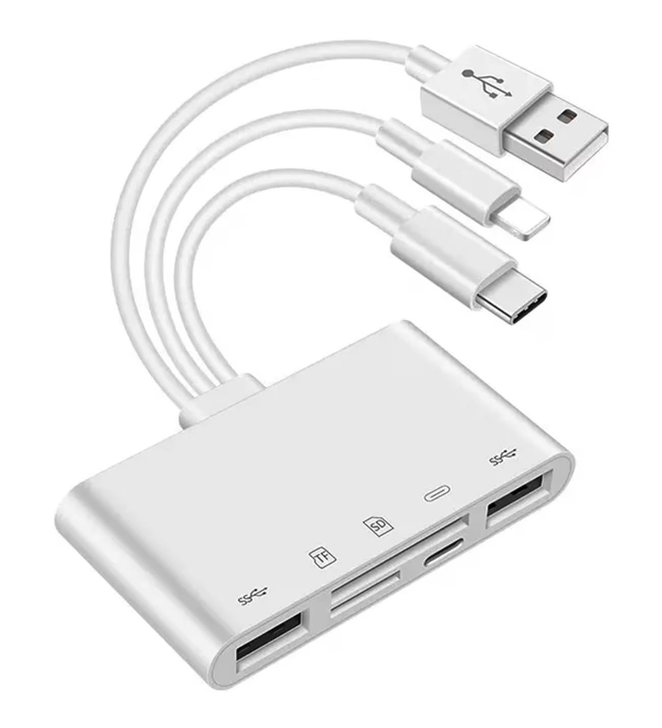 5 in 1 USB3.0 Type-C Lightning To SD, TF Card, Type-C, USB Hub Çevirici Adaptör
