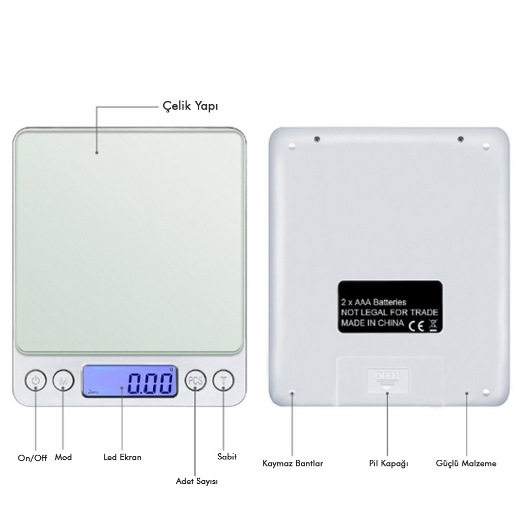 Dijital Hassas Tartı-Mutfak Terazisi 2Kg/0.1Gr
