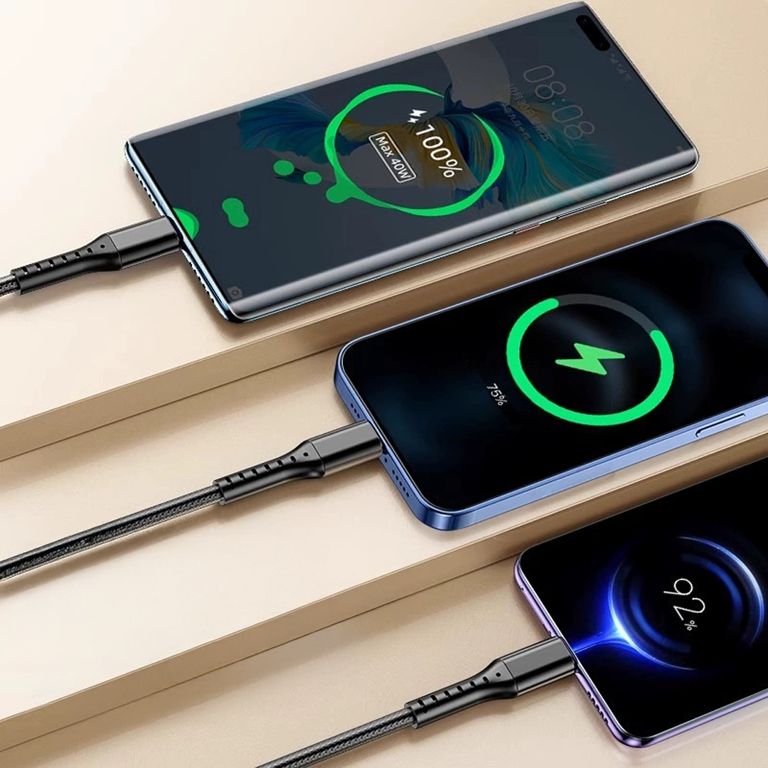 PM 3IN1 SİYAH 1.2 METRE (MICRO USB - LIGHTNING - TYPE C) TELEFON ŞARJ KABLOSU