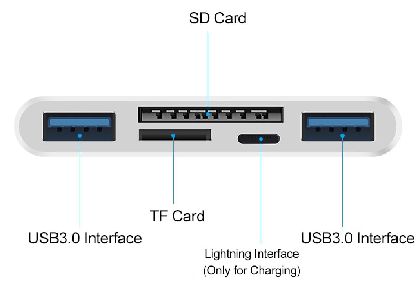 5 in 1 USB3.0 Type-C Lightning To SD, TF Card, Type-C, USB Hub Çevirici Adaptör