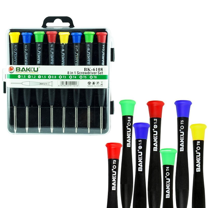 Baku BK-6108 Hassas Tornavida Seti, ekipman onarımında profesyonel ve ev kullanımı için mükemmel bir seçimdir. Telefonların onarımı, tabletler, dizüstü bilgisayarlar ve diğer dijital ekipmanların onarımında uygulanabilir. Çok fonksiyonlu mini tasarımıyla bel, sırt çantalarına bile kolayca taşınabilir.