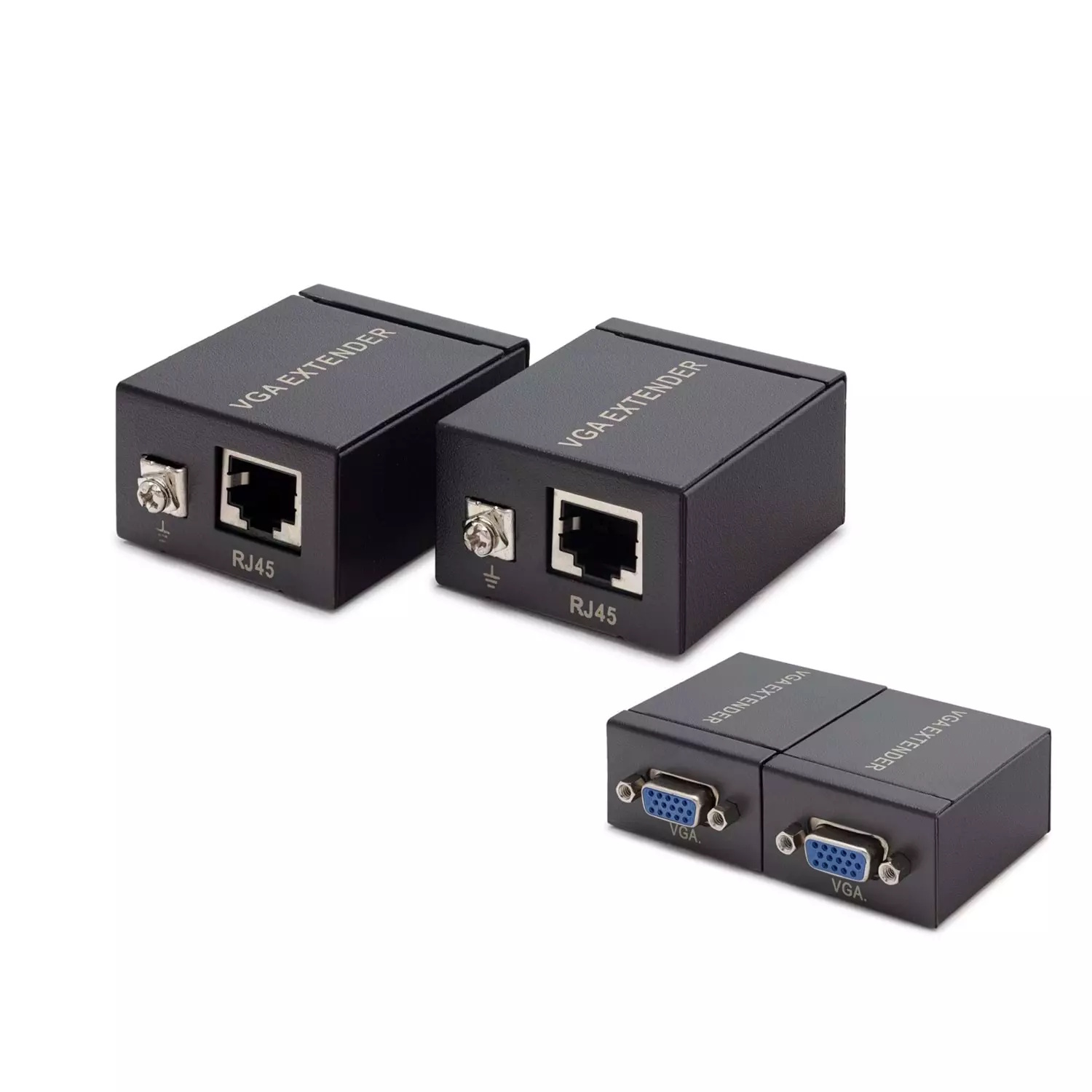 Vga extender cihazı ile vga sinyalini RJ45 portu üzerinden CAT-5e/6 kablo ile 60 metre mesafeye kadar kayıpsız aktarabilirsiniz.