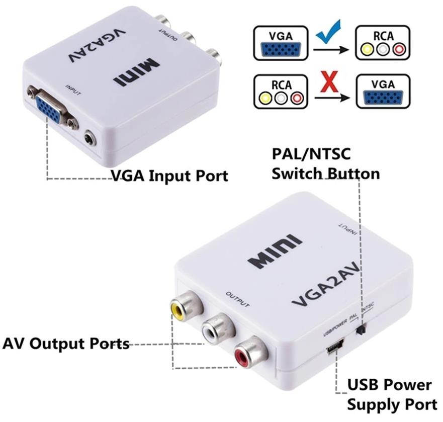 OEM Vga To Av 3Rca Video 1080p Çevirici Dönüştürücü Adaptör 3.5mm Destekli